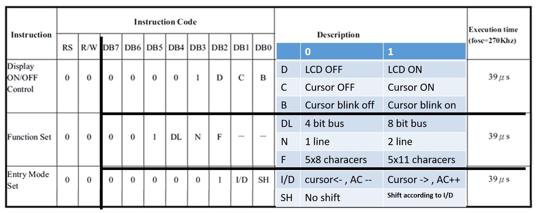 دستورالعمل Dispaly و function set و entry mode در lcd کاراکتری