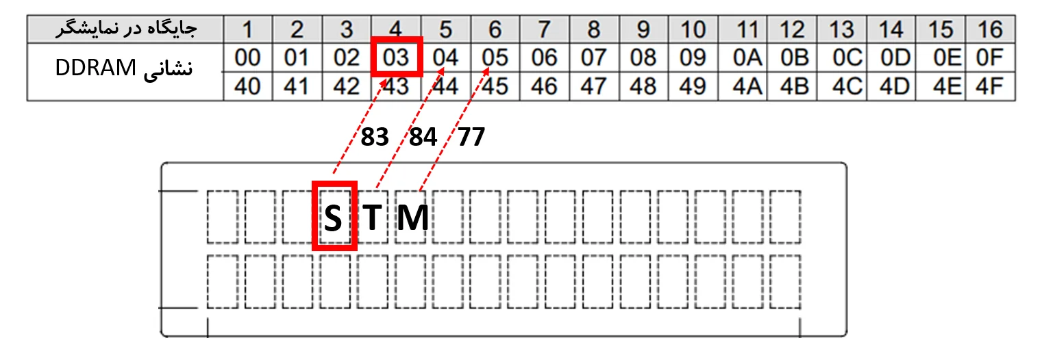 چگونه در DDRAM نمایشگر کاراکتری بنویسیم