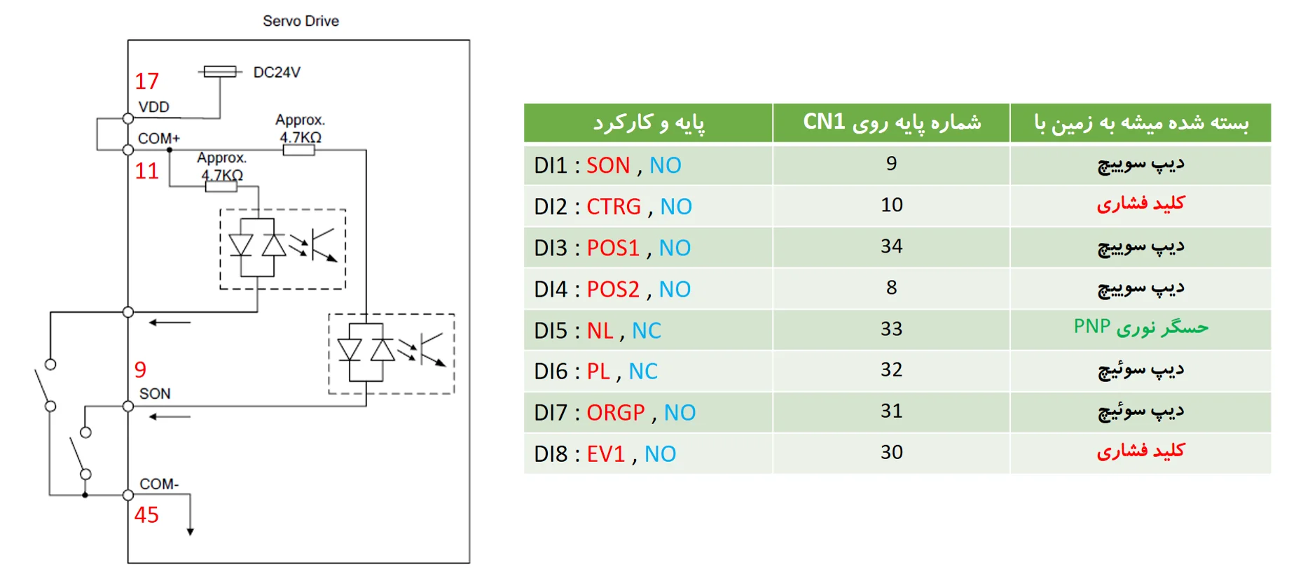 درونبر های سروو درایور هنگامی روشن میشوند که به زمین بسته شوند.