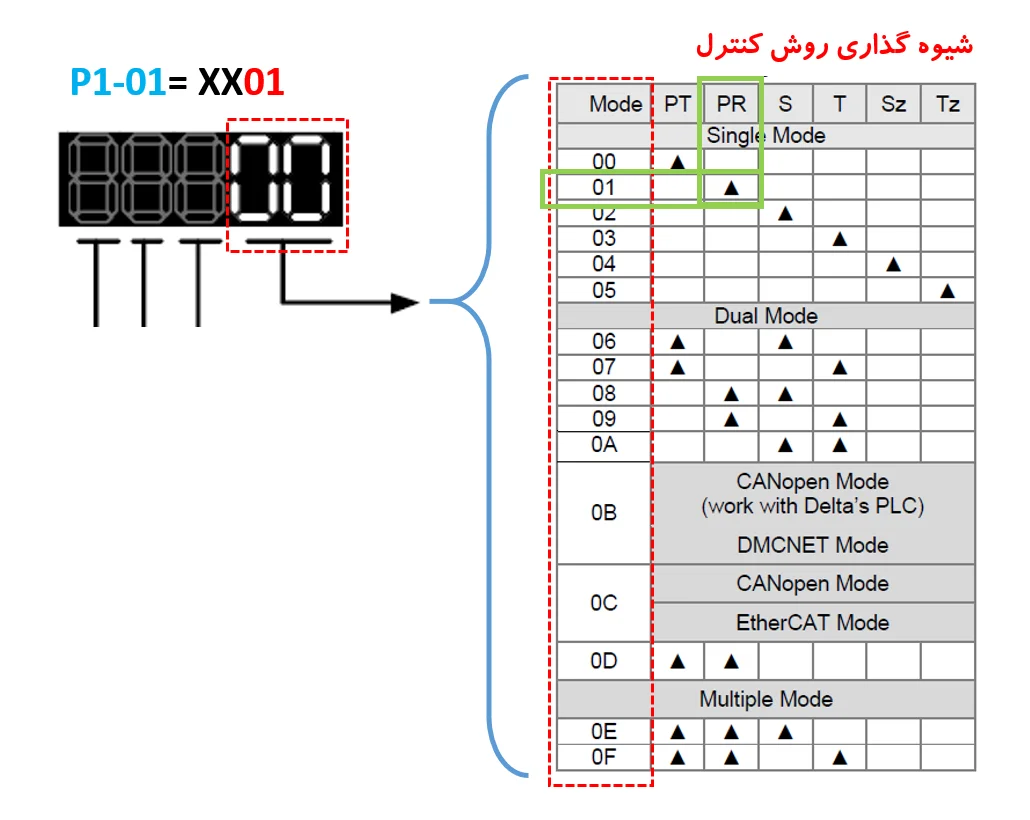آشنایی با پارامتر های وابسته به روش کاری PR در سروو موتور دلتا