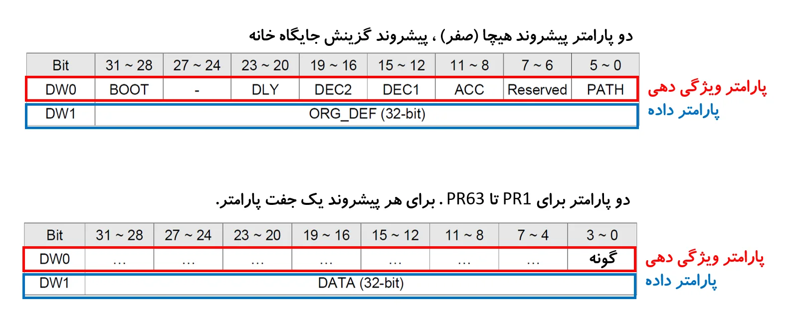 هر پیشروند (هر PR) دو پارامتر 32 بیتی دارد: