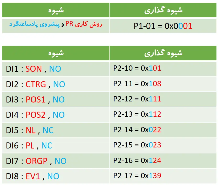 شیوه گذاری (تنظیم) کارگونه PR و پایه های درونبر برای سروو موتور دلتا