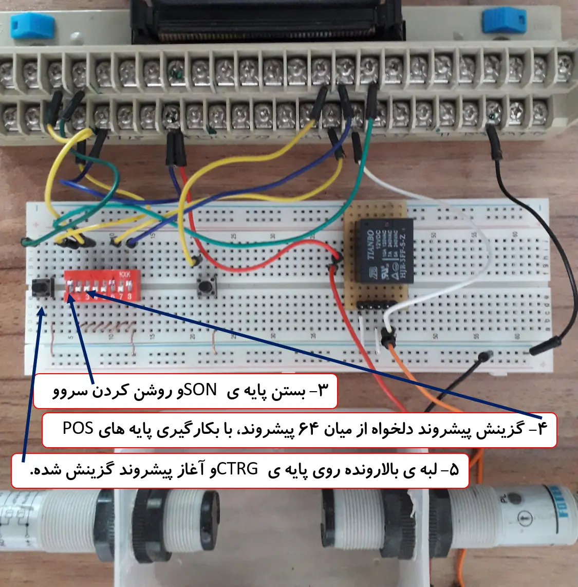 - بستن پایه ی SON و روشن کردن سروو موتور.