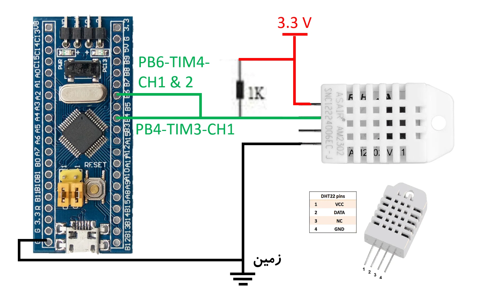• این برنامه TIM3 و TIM4 و DMA1_CH1 و DMA1_CH4 و پایه های PB4 و PB6 رو بکارمیگیره ، در بخش های دیگه ی برنامه ی خودتون هیچ کاری درباره ی این بخش ها نکنید .