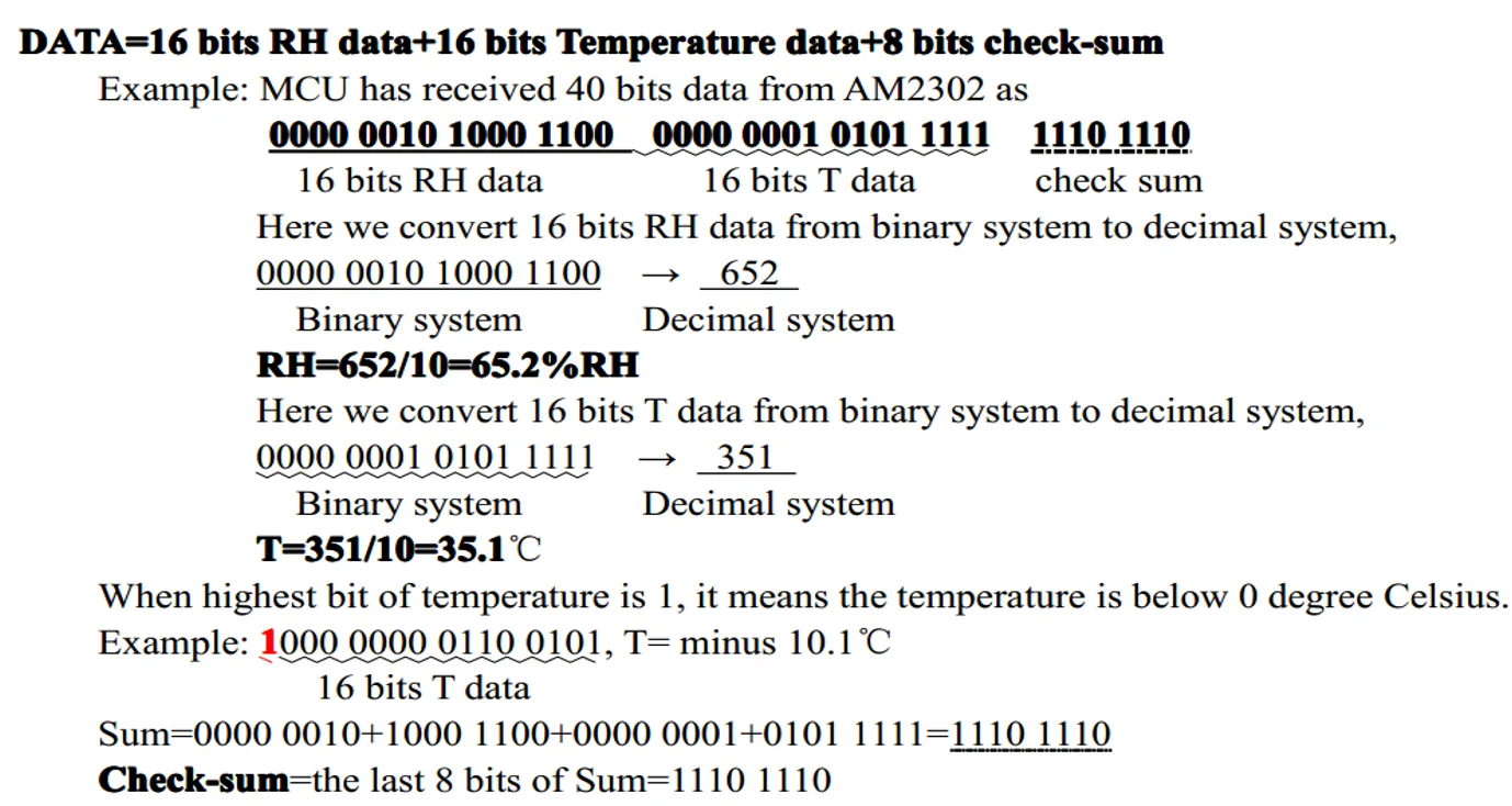 در 40 بیت دریافت شده از سنسور دما و رطوبت DHT22 / AM2302 :
